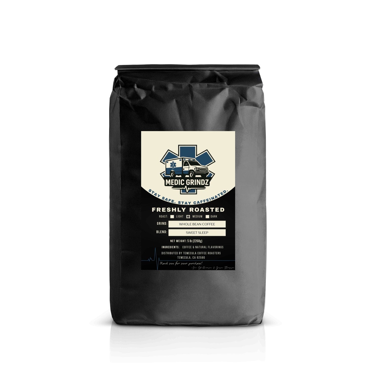 Sweet Sleep is a smooth medium roast with an all-natural buttery caramel flavor that hits like a warm blanket and a silent radio.It’s perfect on its own or blended into your favorite treat — no IV push required.